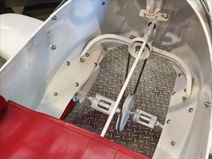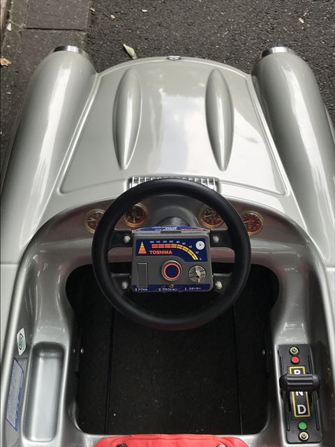 - 右足もとのアクセルを踏むと進みます、ダッシュボードのスイッチで、前進、後退の切り替えが可能です。。