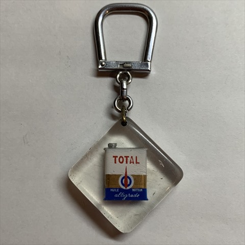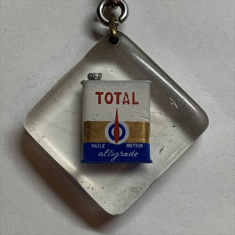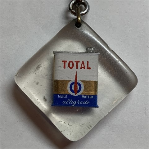 - フランスの石油メーカー「TOTAL(トタル)」のブルボンキーホルダー、オイル缶が中に閉じ込められています。