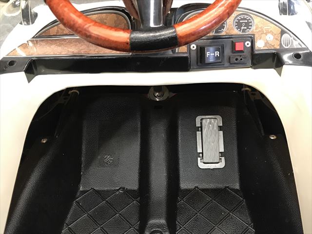- 右足もとのアクセルを踏むと進みます、ダッシュボードのスイッチで、前進、後退の切り替えが可能です。。